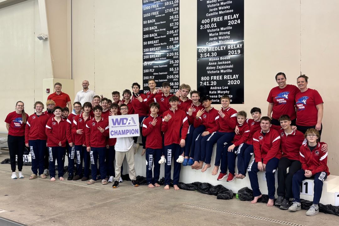 Notes: Century won its third consecutive WDA championship...Dickinson's Shain Louw was named senior athlete of the year...Jamestown's Ben Smith was named WDA coach of the year...Five teams (Century, Dickinson, Jamestown, Mandan and Williston) had at last one event winner...Century's Isaac Vallie won the 50 freestyle and 100 butterfly, setting new WDA records...Jamestown's Finn Moser was also a double winner, taking the 200 and 500 freestyle events.
