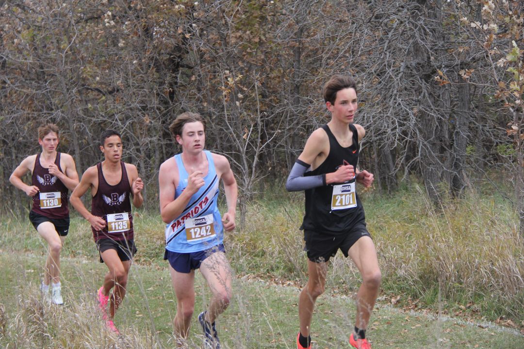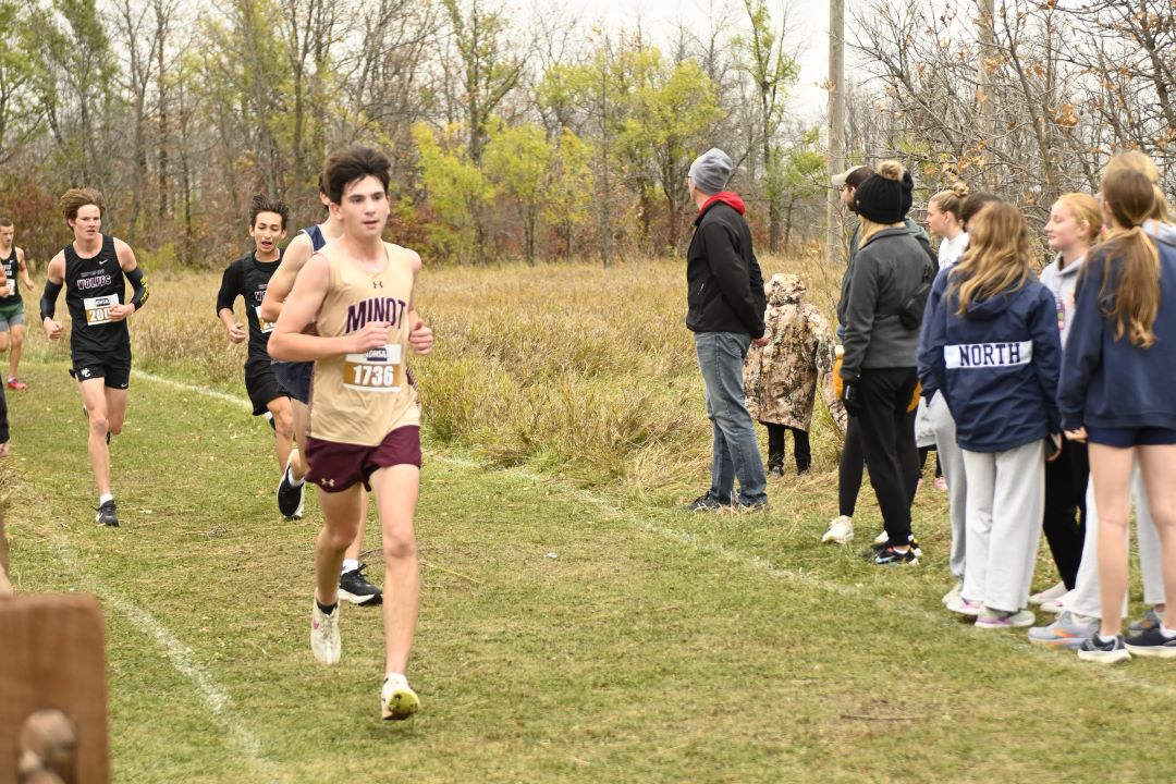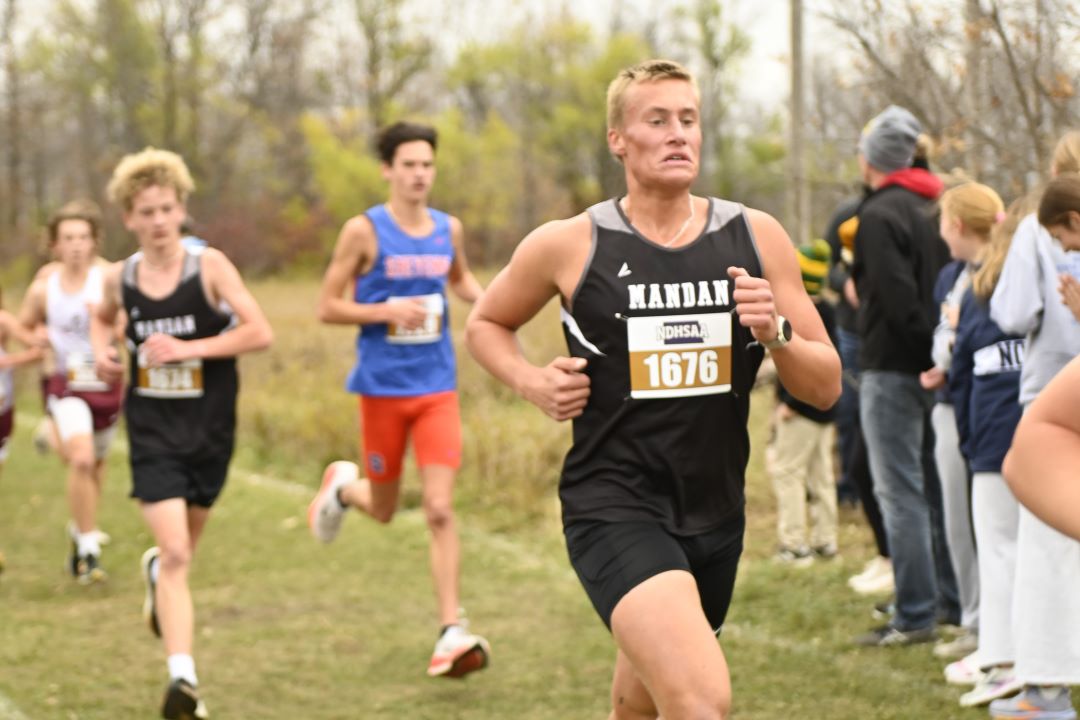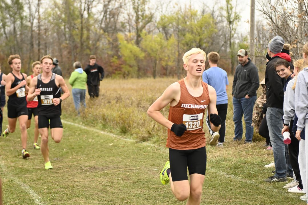 1. Owen Hintz, Bismarck High, 15:42; 2. Jacob Windsor, Bismarck High, 16:31; 3. Kyler Loraas, Bismarck High, 16:41; 4. Dehico Bocanegra Tovar, Watford City, 16:44; 5. Zachary Schanandore, Mandan, 16:51; 6. Travis Frise, Williston, 16:54; 7. Miles Hanson, Bismarck High, 16:56; 8. Austin Wick, Bismarck High, 17:08; 9. Hudsen Bullinger, Century, 17:09; 10. Owen Cowan, Williston, 17:11; 11. Brody Brinson, Century, 17:12; 12. Braxton Buechler, Bismarck High, 17:15; 13. Wyatt Adkins, Williston, 17:25; 14. Yates White Buffalo, Mandan, 17:25; 15. Austin Helbling, Mandan, 17:29; 16. Kaleb Binstock, Dickinson, 17:29; 17. Hayden Anderson, Century, 17;31; 18. Quinn Neset, Century, 17:33; 19. Tyer Asprey Williston, 17:34; 20. Lucien Horner, Legacy, 17:35