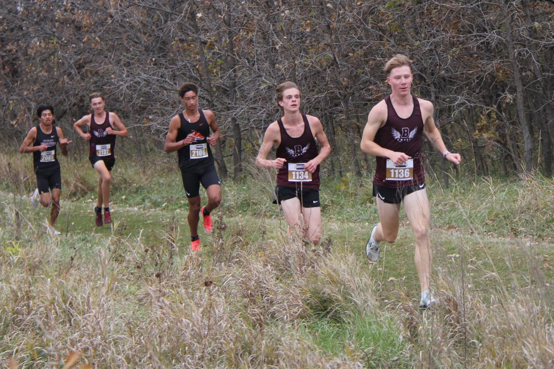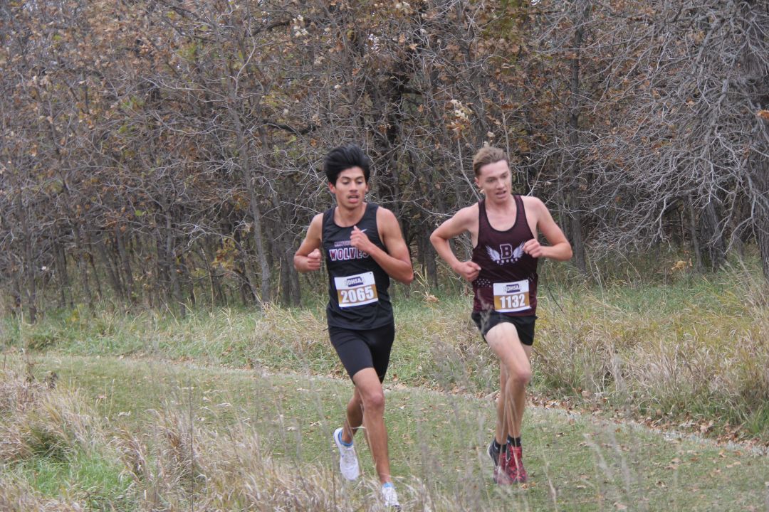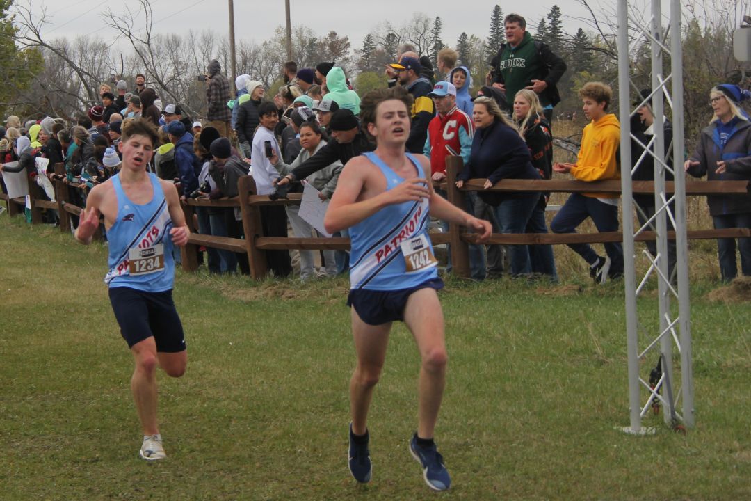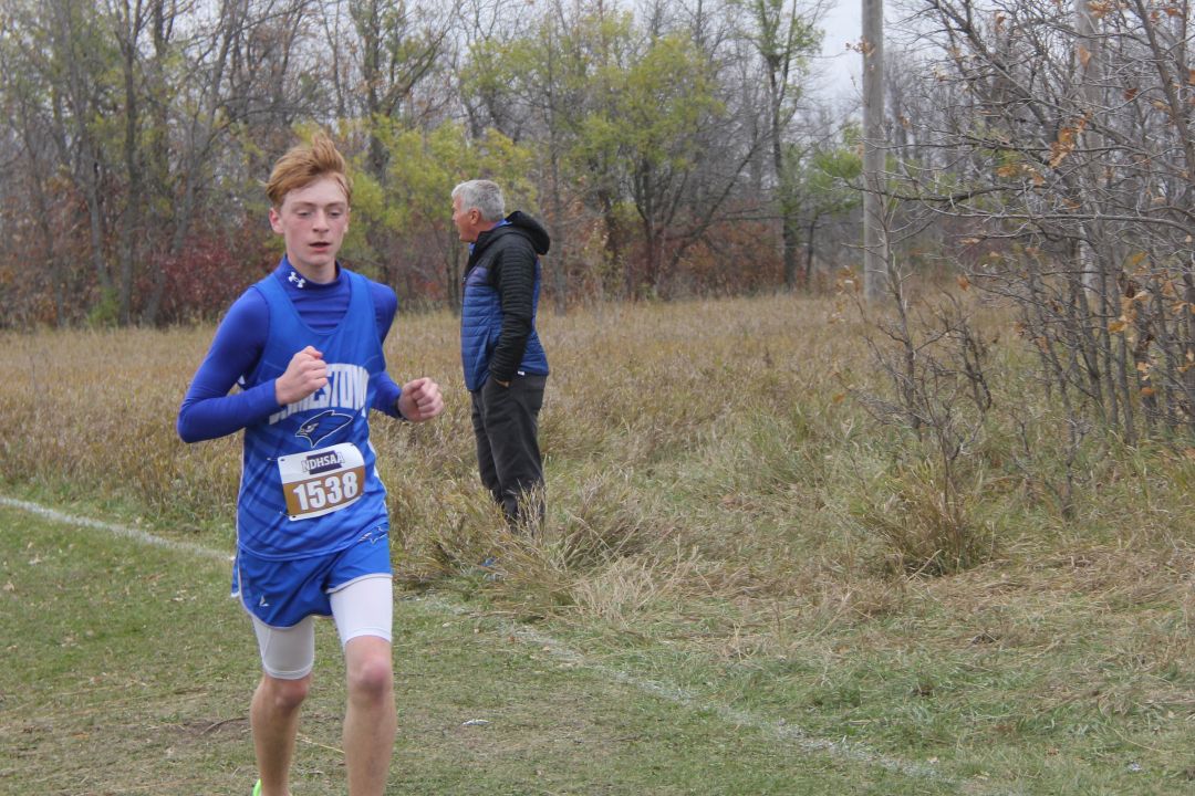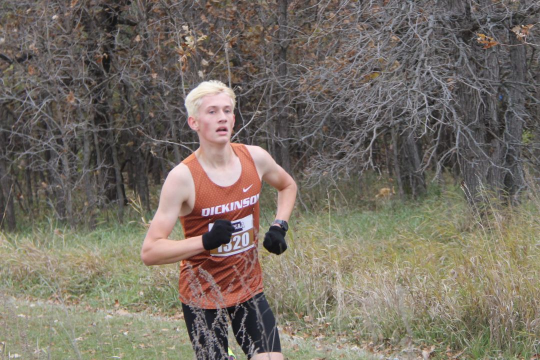1. Owen Hintz, Bismarck High, 15:42; 2. Jacob Windsor, Bismarck High, 16:31; 3. Kyler Loraas, Bismarck High, 16:41; 4. Dehico Bocanegra Tovar, Watford City, 16:44; 5. Zachary Schanandore, Mandan, 16:51; 6. Travis Frise, Williston, 16:54; 7. Miles Hanson, Bismarck High, 16:56; 8. Austin Wick, Bismarck High, 17:08; 9. Hudsen Bullinger, Century, 17:09; 10. Owen Cowan, Williston, 17:11; 11. Brody Brinson, Century, 17:12; 12. Braxton Buechler, Bismarck High, 17:15; 13. Wyatt Adkins, Williston, 17:25; 14. Yates White Buffalo, Mandan, 17:25; 15. Austin Helbling, Mandan, 17:29; 16. Kaleb Binstock, Dickinson, 17:29; 17. Hayden Anderson, Century, 17;31; 18. Quinn Neset, Century, 17:33; 19. Tyer Asprey Williston, 17:34; 20. Lucien Horner, Legacy, 17:35